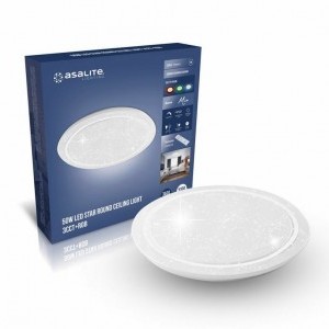 A LED fényforrásokat tartalmazó Asalite LED Mennyezeti Lámpa a jó minőségű és megbízható Led-chipeknek és drivernek, valamint a modern kerek formának és a csillagmintás búrának köszönhetően dekoratív és hosszú távú megoldást jelentenek a lakásának egyenletes, esztétikus és a szemnek is kellemes megvilágítására. A CCT-s (változtatható színhőmérsékletű) mennyezeti lámpáknak 3000K és 6500K között a színhőmérséklete és a fényereje is egyaránt fokozatmentesen állítható, valamint a lámpa peremén integrált RGB LED világítás található, aminek színei vörös, zöld, vagy kék színűek lehetnek. Mindez a csomagolásban található rádiófrekvenciás távirányítóval módosítható.