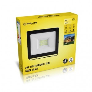 Az Asalite LED Reflektor 30W 6500K a 30 W teljesítmény mellett 2700 lumen fényerősség elérésére képes. A teret 120°-ban képes bevilágítani, így optimális választás lakókörnyezetünk (udvarok, teraszok, autó beállók stb.) külterületeinek megvilágítására. Üzembe helyezését segíti a hosszú, 35 cm-es tápkábel.