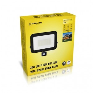 Az Asalite LED Reflektor 30W 6500K a 30W teljesítmény mellett 2700 lumen fényerősség elérésére képes. A teret 110°-ban képes bevilágítani, így optimális választás lakókörnyezetünk (udvarok, teraszok, autó beállók stb.) külterületeinek megvilágítására. Üzembe helyezését segíti a hosszú, 35 cm-es tápkábel.