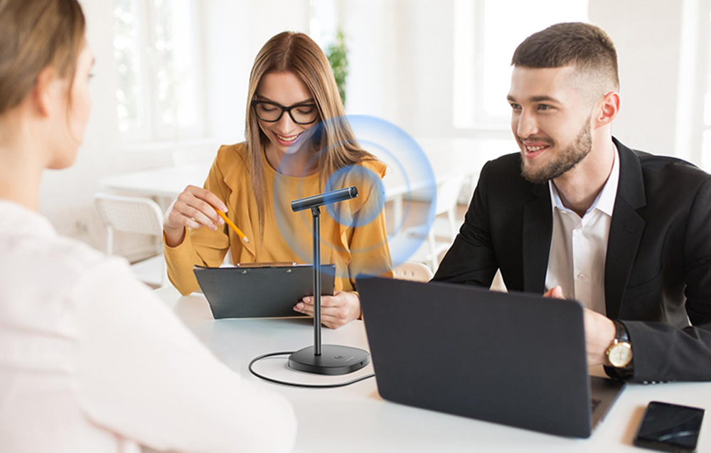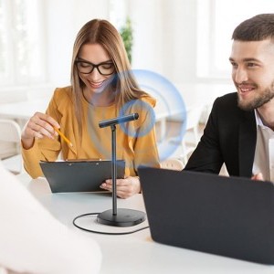 A mikrofon teljes 360 fokos tartományban rögzíti a hangokat, tiszta és éles átvitel érdekében anélkül, hogy meg kellene változtatnia a mikrofon irányát. Nem számít, hol van, hangja mindig tiszta és természetes lesz, ami elengedhetetlen a podcastek, interjúk vagy élő közvetítések rögzítésekor.