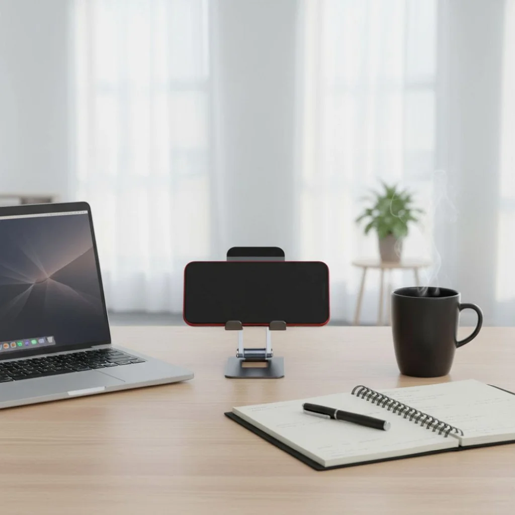 Bár az állvány mindössze 85 gramm súlyú, alumínium teste mégis páratlan stabilitást biztosít, akár a nehezebb telefonmodellek számára is – 600 gramm maximális kapacitásig. Az alsó részen található csúszásgátló párnák gondoskodnak arról, hogy az állvány szilárdan tapadjon az asztal felületén, megakadályozva az elcsúszást használat közben, így eszköze mindig biztonságban van.