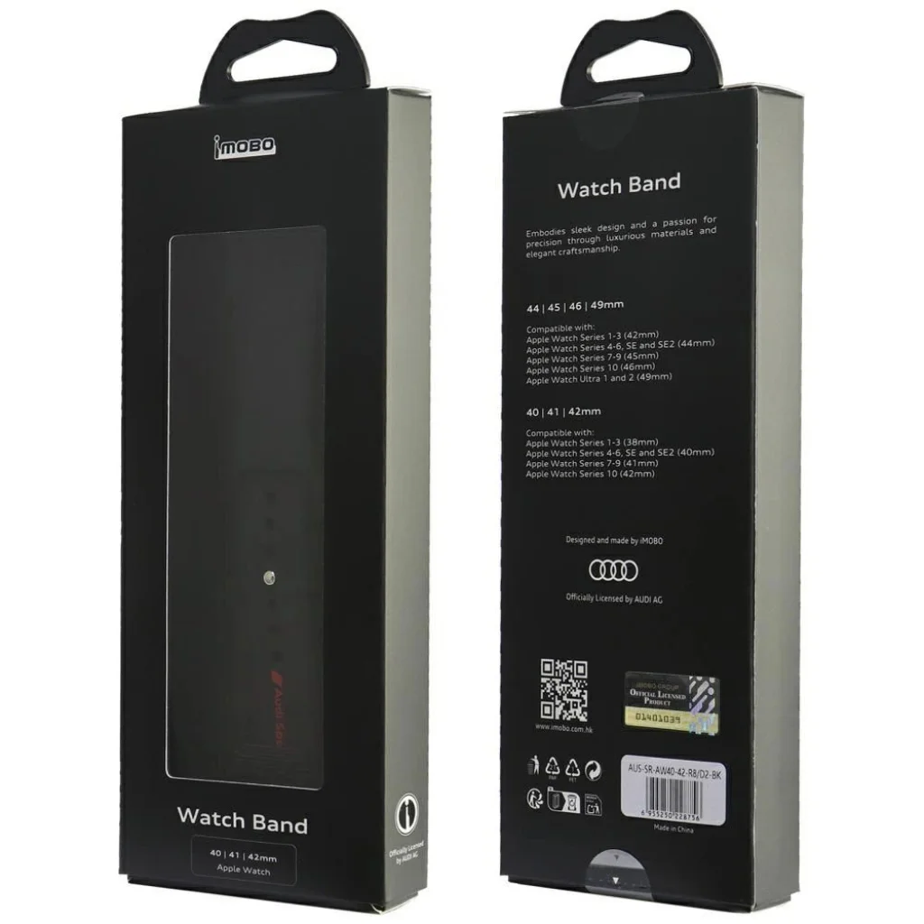 Technikai adatok: Audi Sport piros logós szilikon óraszíj Apple Watch 40/41/42 mm-hez Kompatibilitás: Apple Watch 40/41/42 mm Szín: Fekete Anyag: Szilikon