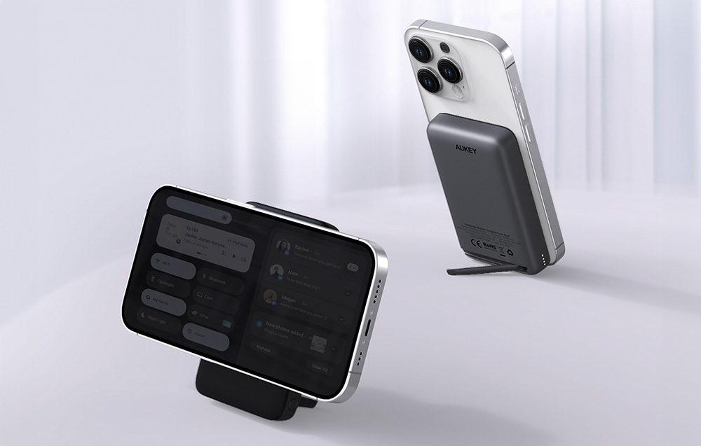 Az Aukey PB-MS02 powerbank állványa lehetővé teszi, hogy kényelmes szögben helyezze el telefonját. Ezáltal kényelmesen tud videóhívásokat lebonyolítani, videókat nézni vagy az internetet böngészni anélkül, hogy kezében kellene tartania az eszközt.