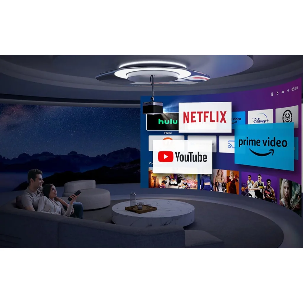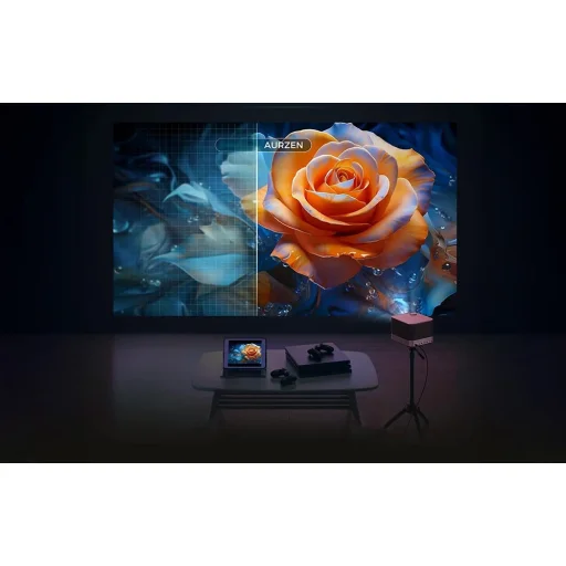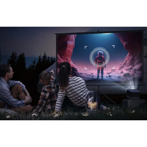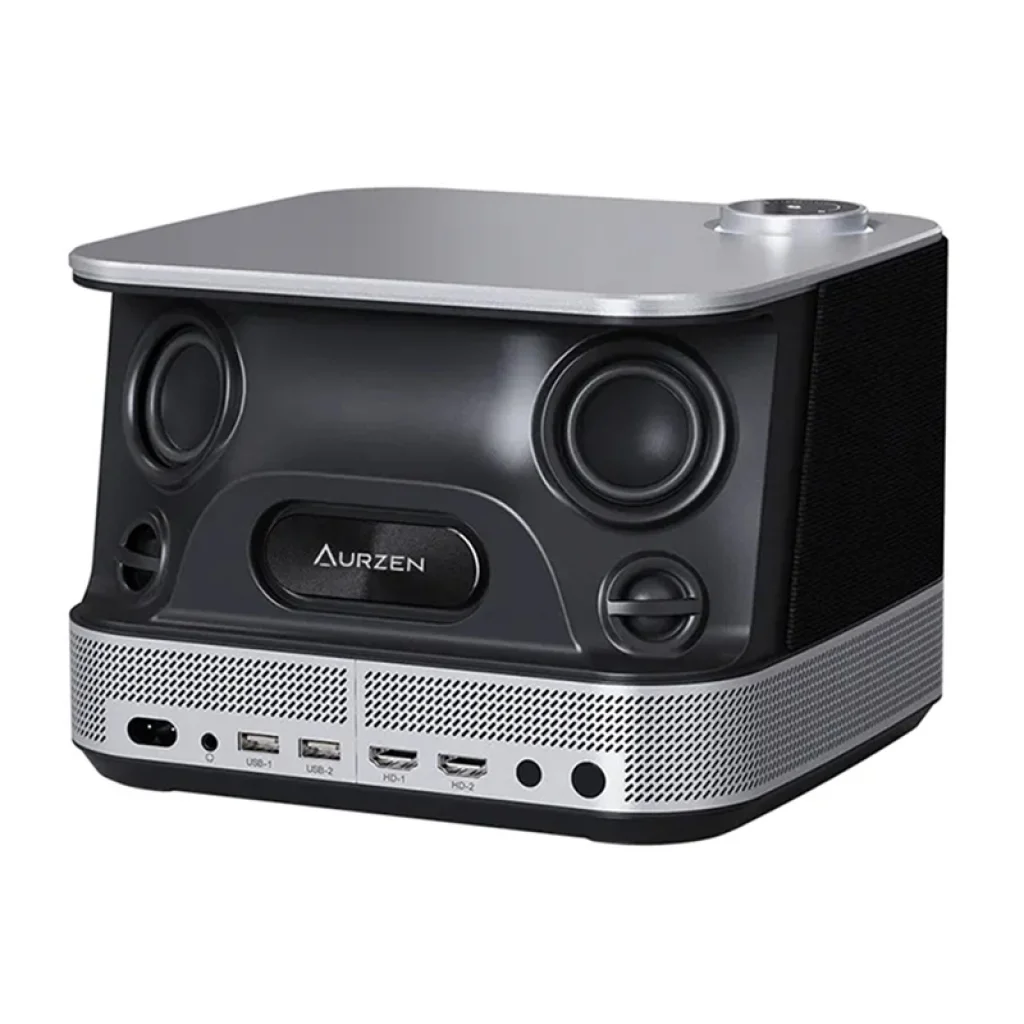 Az Aurzen Boom 3 egy sokoldalú multimédiás projektor, amely fejlett hangrendszert és kiváló minőségű Full HD képet kombinál. Kompakt házában négy 36 wattos hangszóró (2 teljes tartományú, 2 magas hangszóró) rejtőzik, amelyeket basszusmembrán és Dolby Audio technológia támogat. Ez azt jelenti, hogy már nincs szükség további hangberendezésekre a tágas, dinamikus hang élvezéséhez. A projektor natív 1080p felbontásban jeleníti meg a képeket, 4K tartalom támogatással és 500 ANSI lumen fényerővel, így tiszta, élénk képet biztosít. Ezenkívül a készülék webOS rendszeren fut, amely lehetővé teszi népszerű alkalmazások (Netflix, YouTube, Prime Video) használatát anélkül, hogy laptopot vagy TV-dobozot kellene csatlakoztatni.