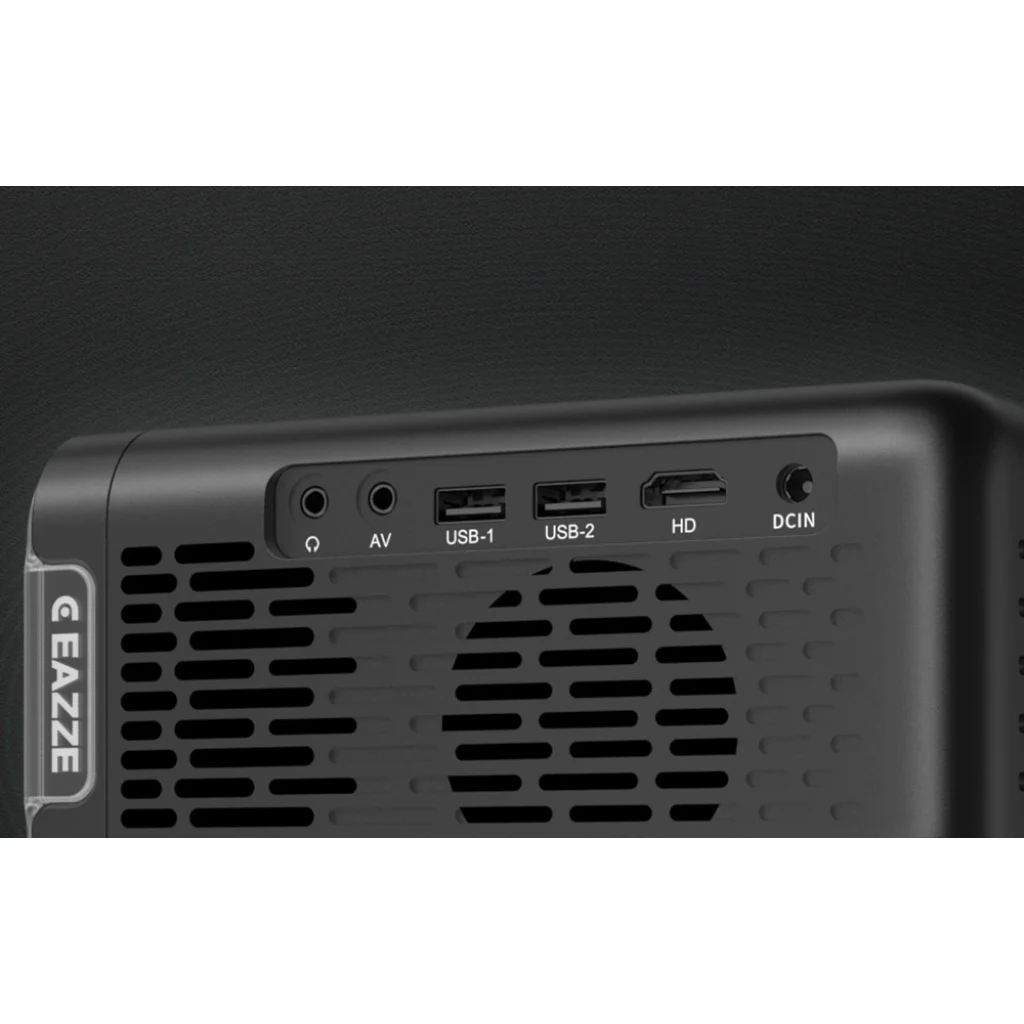 Az Aurzen Eazze D1 Pro számos népszerű csatlakozóval rendelkezik, amelyek megkönnyítik a különböző videóforrások csatlakoztatását. A HDMI-portnak köszönhetően laptopot, játékkonzolt vagy médialejátszót csatlakoztathat, míg az USB-portok lehetővé teszik a tartalmak közvetlen lejátszását hordozható tárolóeszközökről. Ezen felül AV-csatlakozók és fejhallgató-kimenet is rendelkezésre áll.