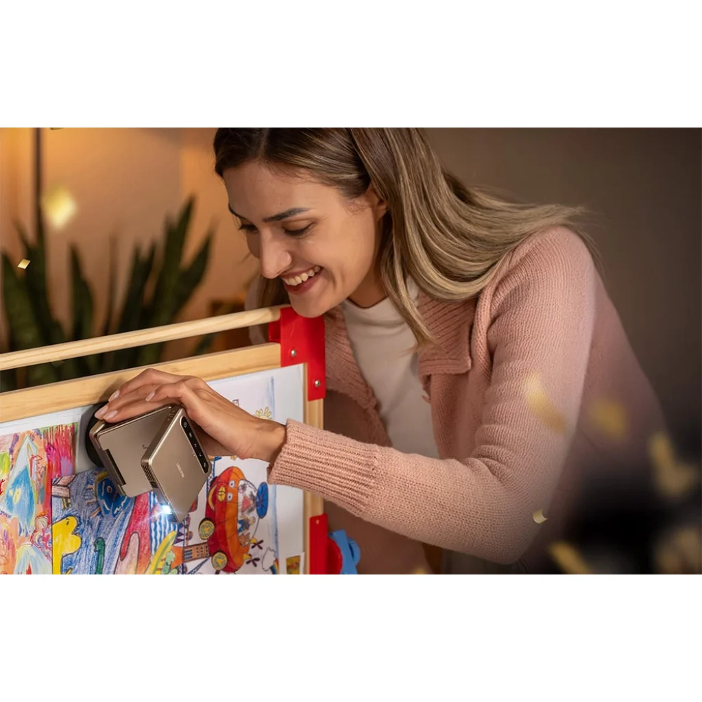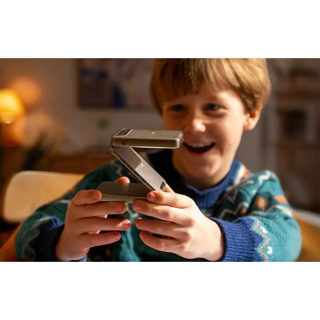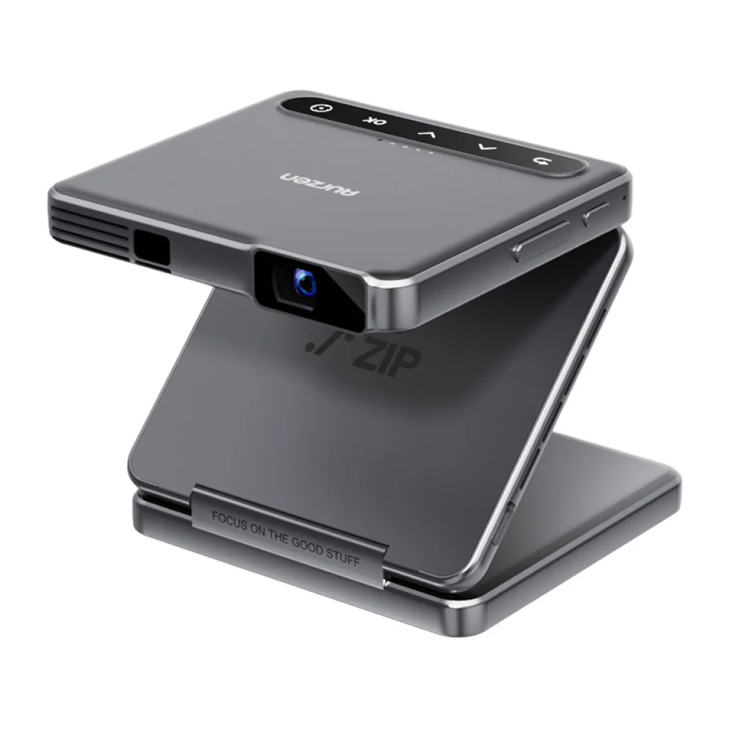A függőleges teljes képernyős mód ideális a modern videóformátumokhoz, mint például a filmekhez és rövidfilmekhez, miközben az AURZEN Zip azonnali klónozási funkciója lehetővé teszi a Wi-Fi nélküli képernyő tükrözést, támogatva iOS, Android, Windows és macOS rendszereket. A CastPlay funkcióval hozzáférést kaphat olyan streaming szolgáltatásokhoz, mint a Netflix és a Disney+. A DLP technológia élesebb, részletgazdag képet biztosít, 100 ANSI lumen fényerő és 720p felbontás mellett. A projektor rugalmas, összecsukható kialakítása szinte korlátlan elhelyezhetőséget biztosít.