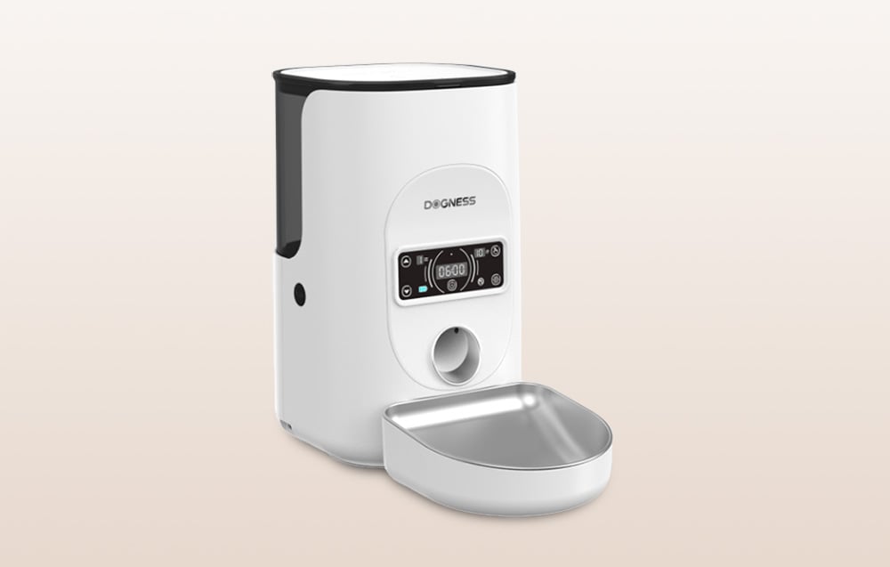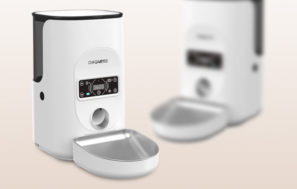 A Dogness F17 4L fliptok intelligens ételadagoló rozsdamentes acél tartállyal (fehér). A Dogness F17-M egy modern és funkcionális ételadagoló, amelyet úgy terveztek, hogy biztosítsa a kisállatának a folyamatos hozzáférést a friss ételhez. 4 literes kapacitásának és masszív kialakításának köszönhetően ideális közepes és nagytestű háziállatok tulajdonosainak, akik szeretnének gondoskodni kedvencük étkezésének rendszerességéről.