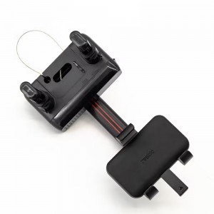 - Biztonságos visszapillantó tükörre rögzítés: Az erős rugós csipesz egy speciális forgatható zárszerkezettel (az "OPEN" és "LOCK" feliratoknál elforgatható) kombinálva garantálja a tartó stabil illeszkedését a visszapillantó tükörhöz. Ez a rögzítési mód nem akadályozza a szélvédőn való kilátást, és nem hagy nyomot a műszerfalon.