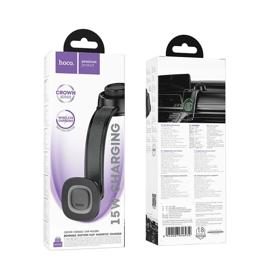 Autós telefontartó indukcióval Hoco 15W középkonzol HW31 fekete