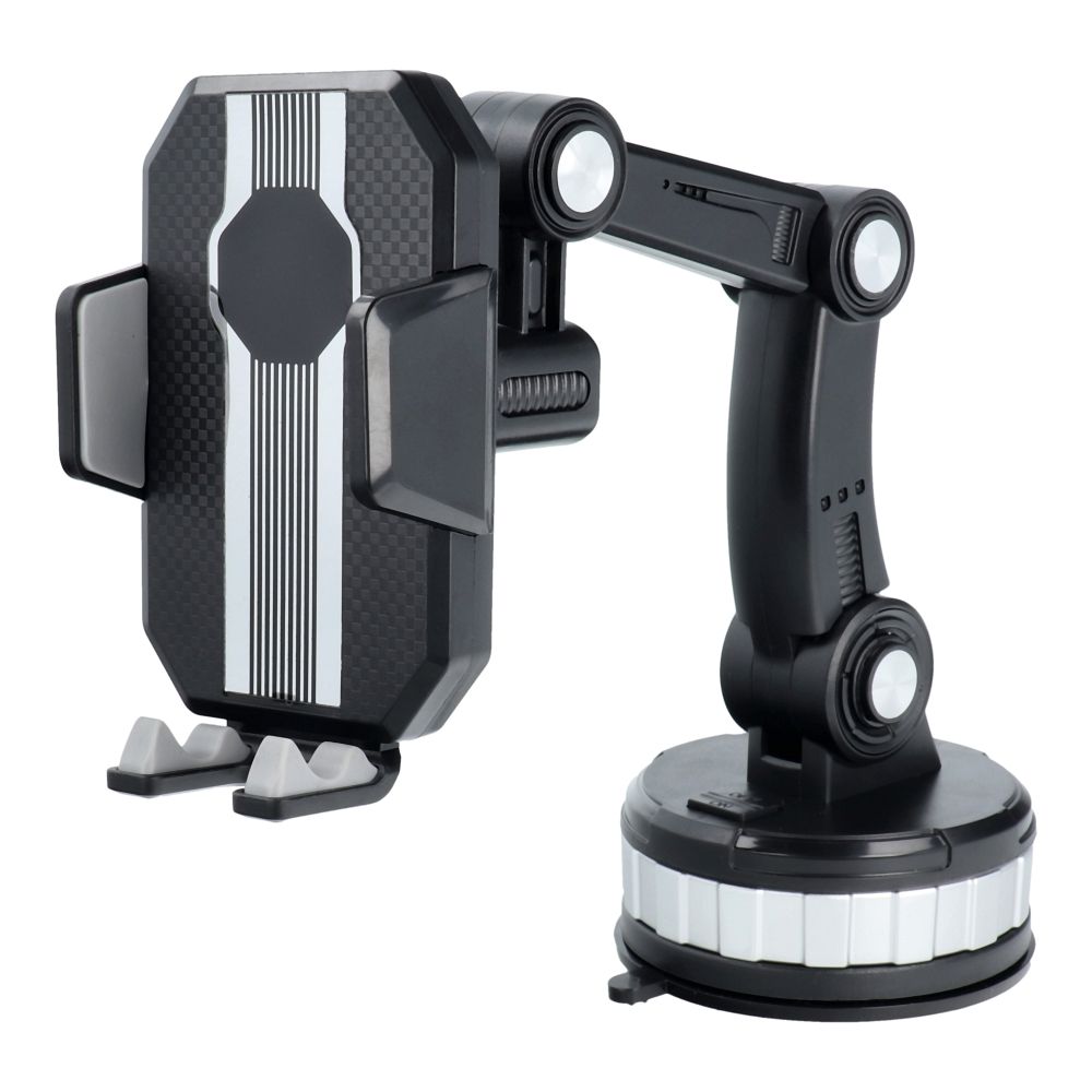 Univerzális autós telefontartó okostelefonhoz. Rögzíthető a szélvédőre vagy a műszerfalra. A tartó lehetővé teszi a kényelmes használatot, például az okostelefon navigációját utazás közben. Kihúzható kampók, hosszú állítható kar 360 fokos forgatással, és a telefon vertikális vagy horizontális elhelyezésének lehetősége biztosítja, hogy az okostelefont egyedi igényekhez igazíthasd. A szélvédőre vagy a műszerfalra történő kényelmes felszerelés nem korlátozza a kilátást vezetés közben. Specifikációk: Modell: ZP-X0566Kompatibilitás: 4.7–6.8 hüvelyk képátlójú készülékekKar távolság: 54.0–94.9 mmTelepítés: szélvédő, műszerfal (tapadókorong)Anyag: PC + ABS + acél + szilikonSúly: 280 g