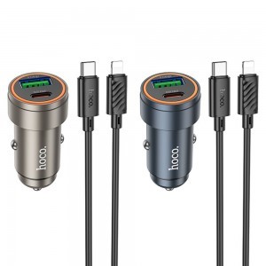 A Hoco Z57A autós töltő egy praktikus és hatékony kiegészítő, amely két porttal – USB-C és USB-A – rendelkezik, így lehetővé téve két eszköz egyidejű gyors töltését. Támogatja a legnépszerűbb gyorstöltési szabványokat, beleértve a Power Delivery-t, a Quick Charge-ot, az FCP-t és az AFC-t, legfeljebb 30 W maximális teljesítmény biztosításával. Kicsi és szolid – kompakt méretei (54 × 25 mm) és tartós alumínium-ötvözet háza tökéletesen illeszkedik bármely autó belső terébe, és nem nyúlik ki a szivargyújtó aljzatából. Az USB-C port maximálisan 30 W teljesítményt, míg az USB-A port legfeljebb 18 W teljesítményt kínál. Két eszköz egyidejű töltésekor a teljes teljesítmény 5 V / 3 A – elegendő ahhoz, hogy hatékonyan töltse okostelefonját és például a navigációs készülékét. A készlet tartalmaz egy 1 méteres USB-C-Lightning kábelt, amely lehetővé teszi iPhone készülékek gyors töltését további kiegészítők vásárlása nélkül. Specifikációk:
