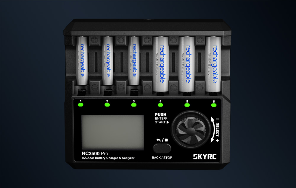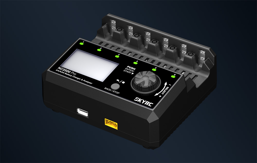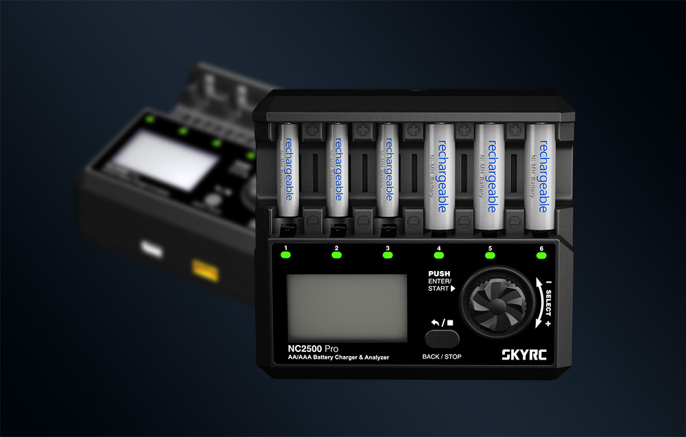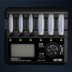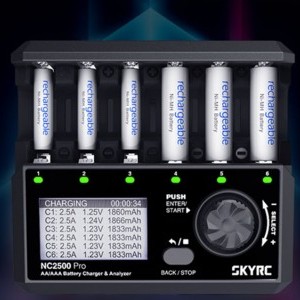 A SkyRC NC2500 Pro töltő nemcsak AA és AAA akkumulátorok töltését teszi lehetővé, hanem azok regenerálását is. A készülék többféle üzemmódot kínál, és további előnye a bejáratási funkció, amely lehetővé teszi a régóta nem használt modellmotorok bejáratását. Van egy USB-portja is, amely támogatja a QC 3.0 gyorstöltést, és a töltő 6 akkumulátorhellyel rendelkezik.
