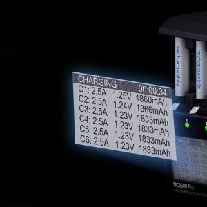 Az NC2500 Pro-val akár 6 akkumulátort is tölthet egyszerre. A készülék 6 slottal van felszerelve, és 2,5 A maximális áramerősséget kínál. A töltő speciális Step Charging módot is kínál, amely lehetővé teszi az áramerősség beállítását az egymást követő töltési lépésekhez. Így még jobban vigyázhat akkumulátorai állapotára és élvezheti azok optimális teljesítményét!
