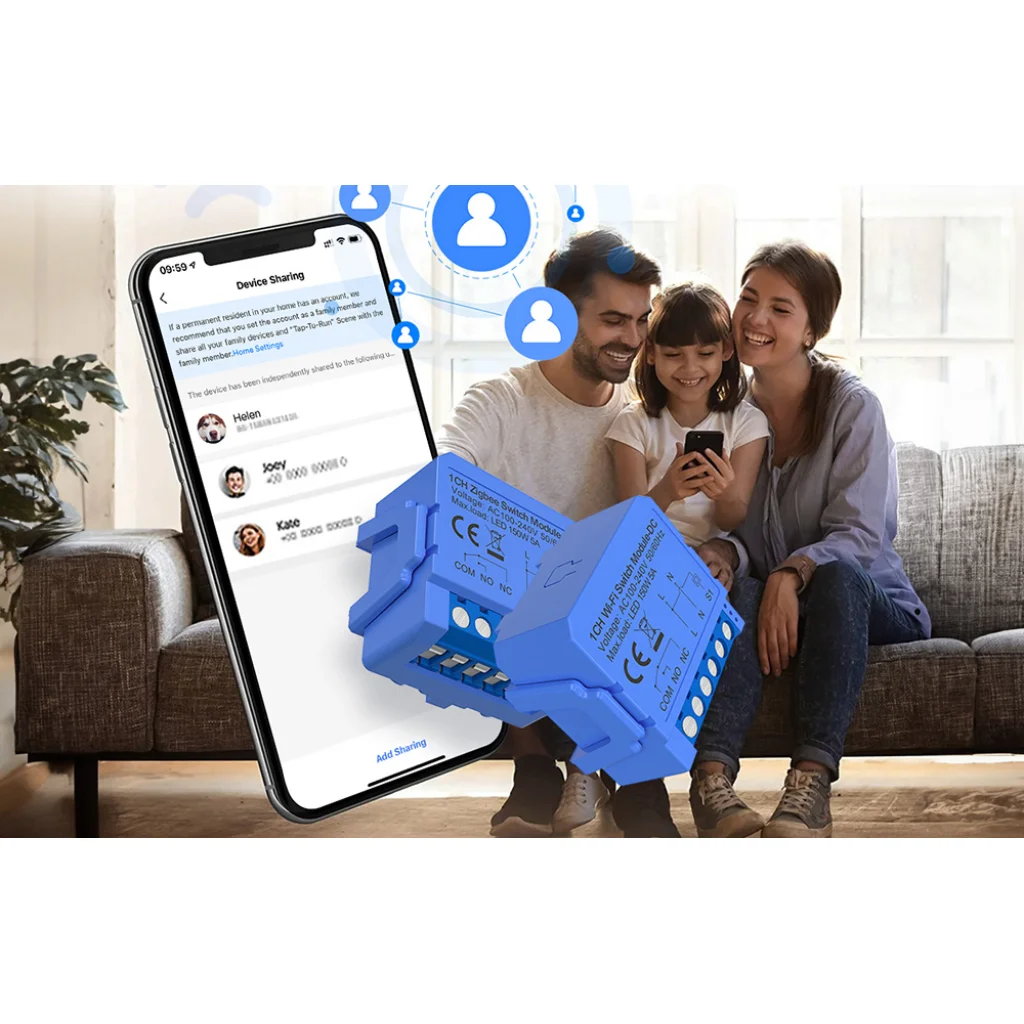 A Tuya Smart vagy Smart Life mobilalkalmazás segítségével okostelefonjáról hozzáférhet a készülékhez - bármikor bekapcsolhatja, kikapcsolhatja és ütemezheti az eszközöket. A modul áramszünet után is emlékszik a legutóbbi állapotára, a megosztási funkció pedig lehetővé teszi, hogy más felhasználók számára is vezérelhesse. A teljes ZigBee integráció lehetővé teszi, hogy a teljes intelligens otthoni ökoszisztémát egyetlen alkalmazásból működtesse.