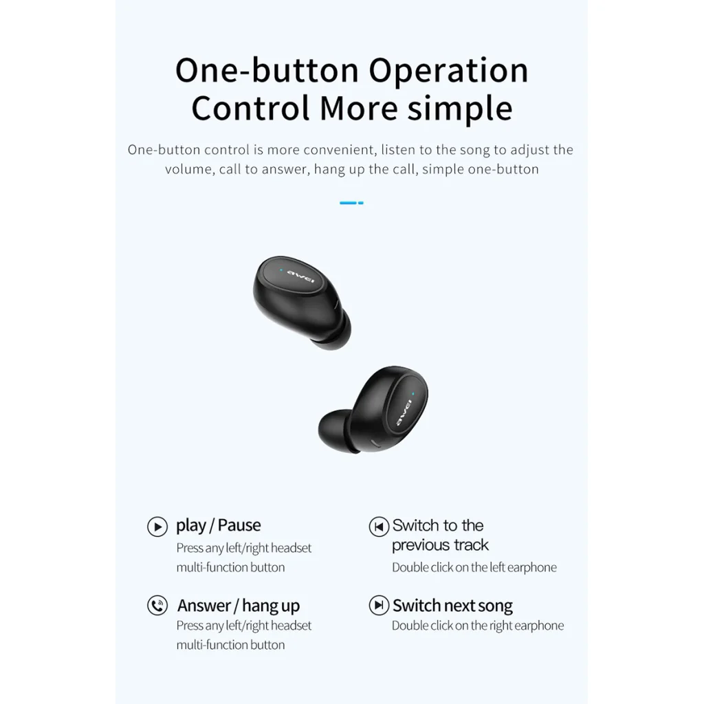 Vezeték nélküli, Stereo hangzást biztosító fülhallgató, bluetooth 5.0-val és saját töltést biztosító powerbankkal. Együttes és különálló használatot is lehetővé tevő, vízálló kialakítás.