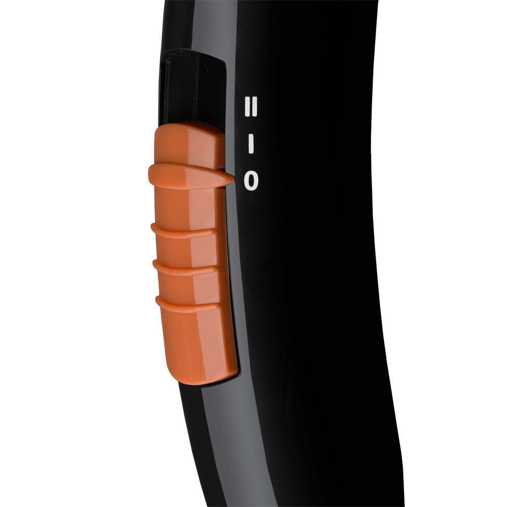 - 2 sebesség/hőmérséklet fokozat: Szabályozd a légáramlást és a hőmérsékletet hajad igényeinek megfelelően. A két fokozat optimális szárítást biztosít minden hajtípushoz és frizurához. A kontrasztos narancssárga kapcsolóval a beállítások könnyedén módosíthatók.