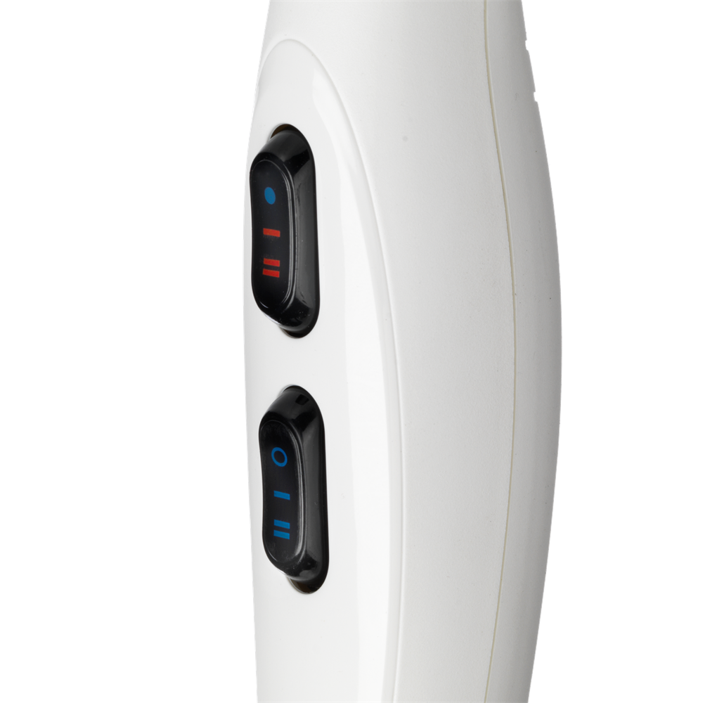 - Több hő- és sebességfokozat: Az ergonomikus kialakítású kapcsolók segítségével (ahogy a termékképeken is látható) könnyedén választhat 3 hőmérséklet-fokozat és 2 sebességfokozat közül, így minden hajtípushoz és styling igényhez megtalálhatja az ideális beállítást.
