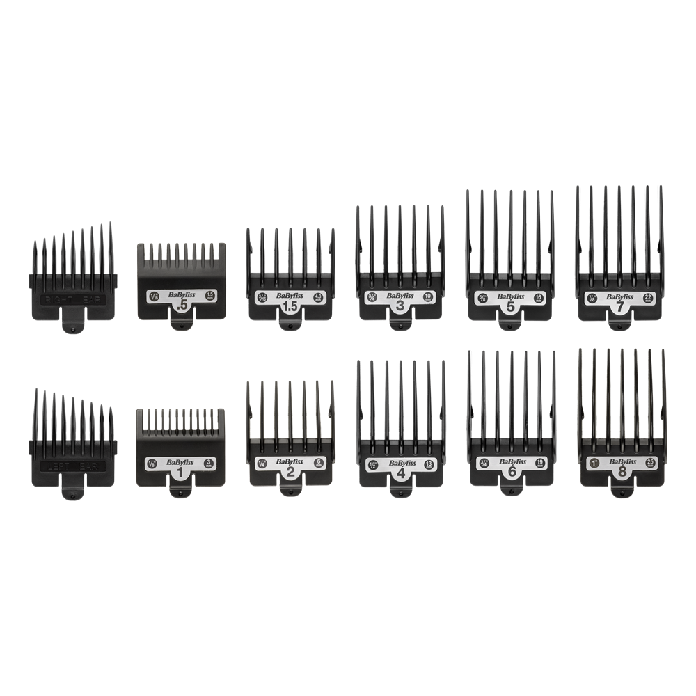 - Széles vágáshossz-választék: Vezetőfésűk a következő méretekben: 0.5 mm, 1 mm, 1.5 mm, 2 mm, 3 mm, 4 mm, 5 mm, 6 mm, 7 mm és 8 mm.