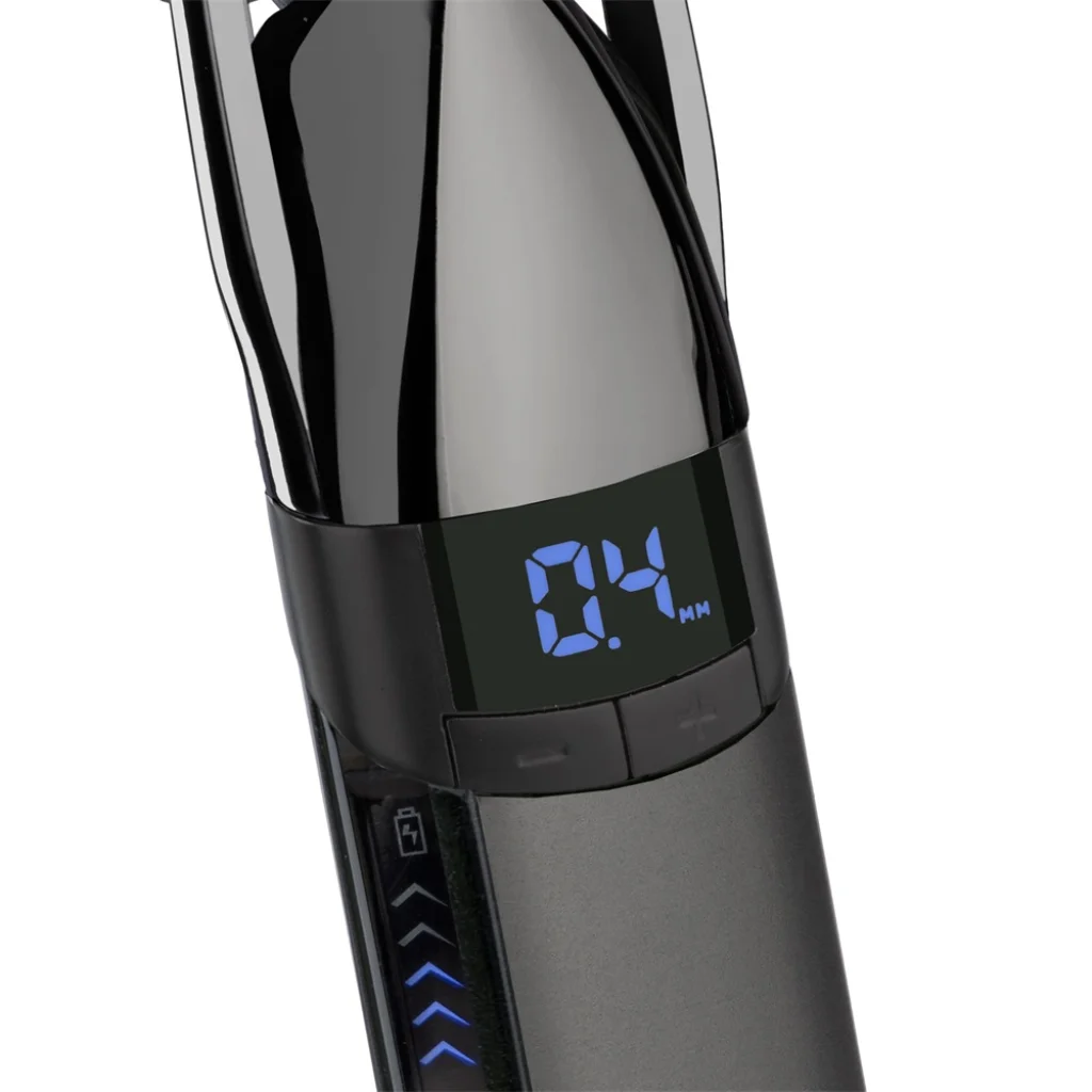 - Digitális precíziós vágáshossz-beállítás: Az integrált digitális kijelzőn keresztül, a +/- gombok segítségével, rendkívül pontosan beállíthatja a kívánt vágáshosszt. Az egészen rövid, 0.4 mm-es borostától a hosszabb, 5.0 mm-es szakállig könnyedén alakíthatja ki stílusát.