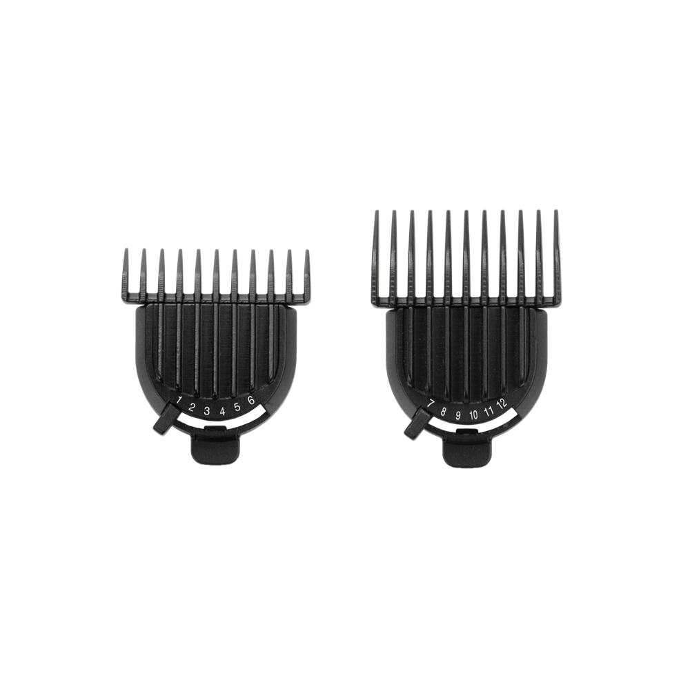 A tökéletes szakáll elkészítéséhez elengedhetetlen a megfelelő hosszúság kiválasztása. A BaByliss T992E ehhez két állítható vezetőfésűt kínál, amelyek összesen 12 különböző vágáshosszt tesznek lehetővé. Az egyik fésű 1 mm-től 6 mm-ig, a másik pedig 7 mm-től 12 mm-ig terjedő beállításokat kínál, így könnyedén megtalálhatja az Önnek ideális hosszt, legyen szó rövid, ápolt szakállról vagy hosszabb, dúsabb fazonról.