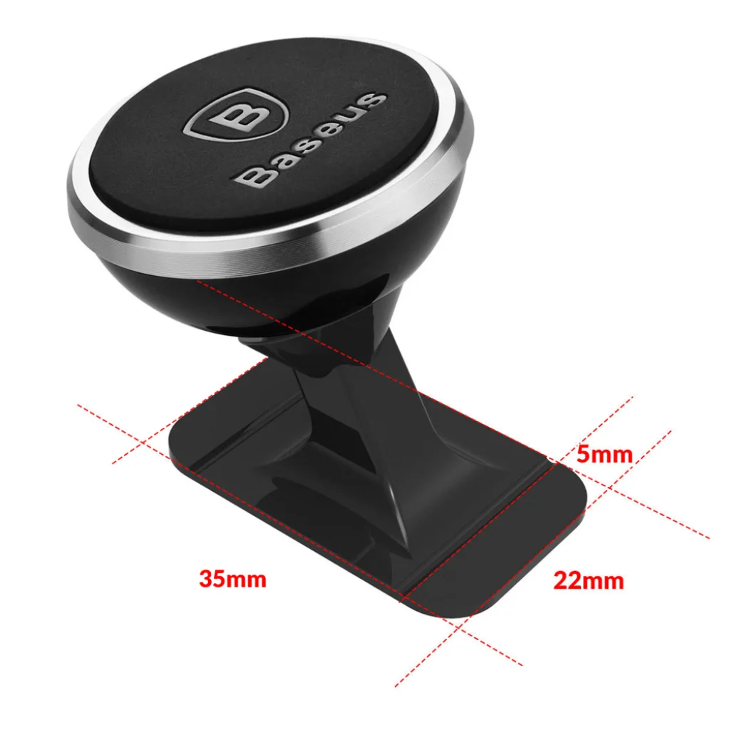 Műszerfalra erősíthető, mágneses autós telefontartó, 360 fokos forgathatósággal. Négy erős mágnese gondoskodik arról hogy a rá helyezett telefon a helyén maradjon.