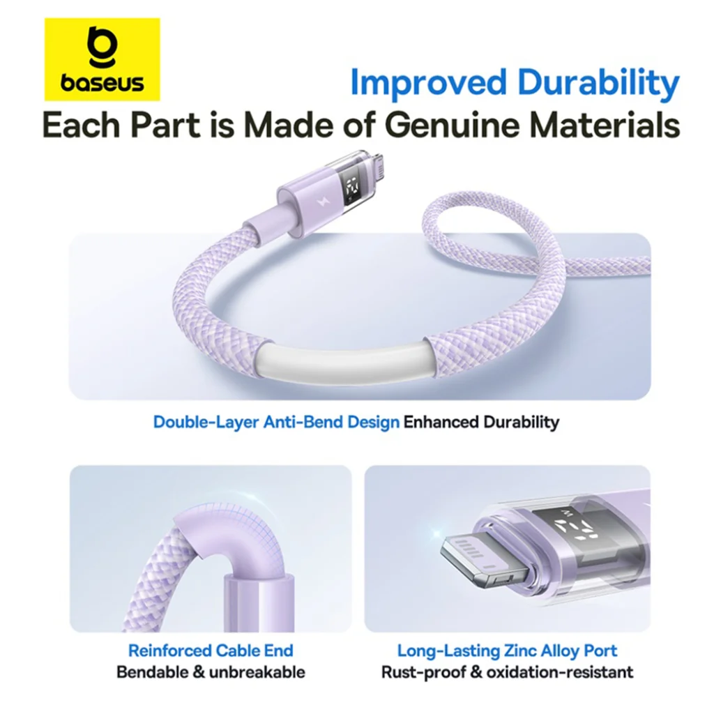 Fedezze fel a Baseus Display 2 adat- és töltőkábelt, amely a modern technológiát elegáns designnal ötvözi. Ez az USB-ről Lightning-ra kábel nemcsak gyors töltést biztosít, hanem egy intelligens digitális kijelzővel is rendelkezik, amely valós időben mutatja a töltési teljesítményt. Tökéletes választás iPhone 8-14 sorozatú készülékéhez, a stílusos köd lila szín pedig különleges eleganciát kölcsönöz.