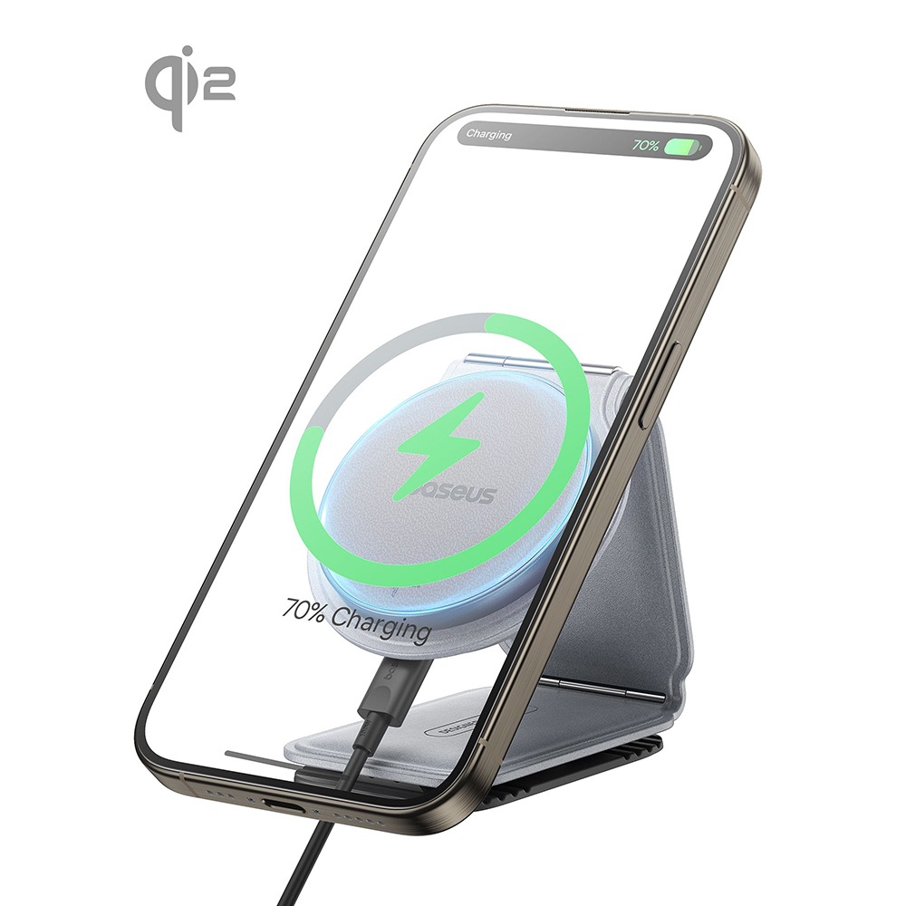 - Villámgyors 15W-os töltés: A Baseus PrimeTrip C02 a Qi2 szabványnak köszönhetően optimalizált, gyors töltést biztosít, így minimális idő alatt feltöltheti okostelefonját.