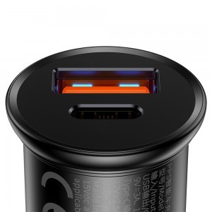 A Baseus Autós Töltő Kör alakú Fém (CCALL-BS01) a tökéletes megoldás, ha gyors és megbízható töltésre van szüksége autójában. Elegáns, fekete fém kialakításával nemcsak rendkívül hatékony, de stílusos kiegészítője is lesz autója belső terének, zökkenőmentesen illeszkedve a szivargyújtó aljzatba. Két portjával – egy Type-C és egy USB-A – és a legmodernebb gyorstöltési protokollok széleskörű támogatásával biztosítja, hogy készülékei mindig maximális sebességgel tölthetők legyenek, bárhová is tart.