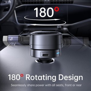 A töltő innovatív 180 fokban elforgatható kialakítása lehetővé teszi, hogy könnyedén megossza a töltési lehetőséget az autó minden ülésével – elöl és hátul egyaránt. Így minden utas kényelmesen hozzáférhet a töltéshez.