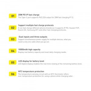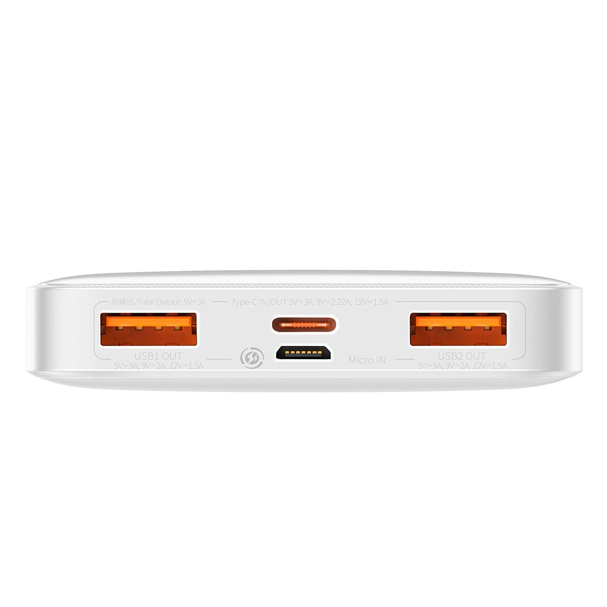 Baseus Bipow gyors töltésű power bank 10000mAh 20W fehér (Overseas Edition) + USB-A - Micro USB kábel 0.25m fehér (PPBD050502)