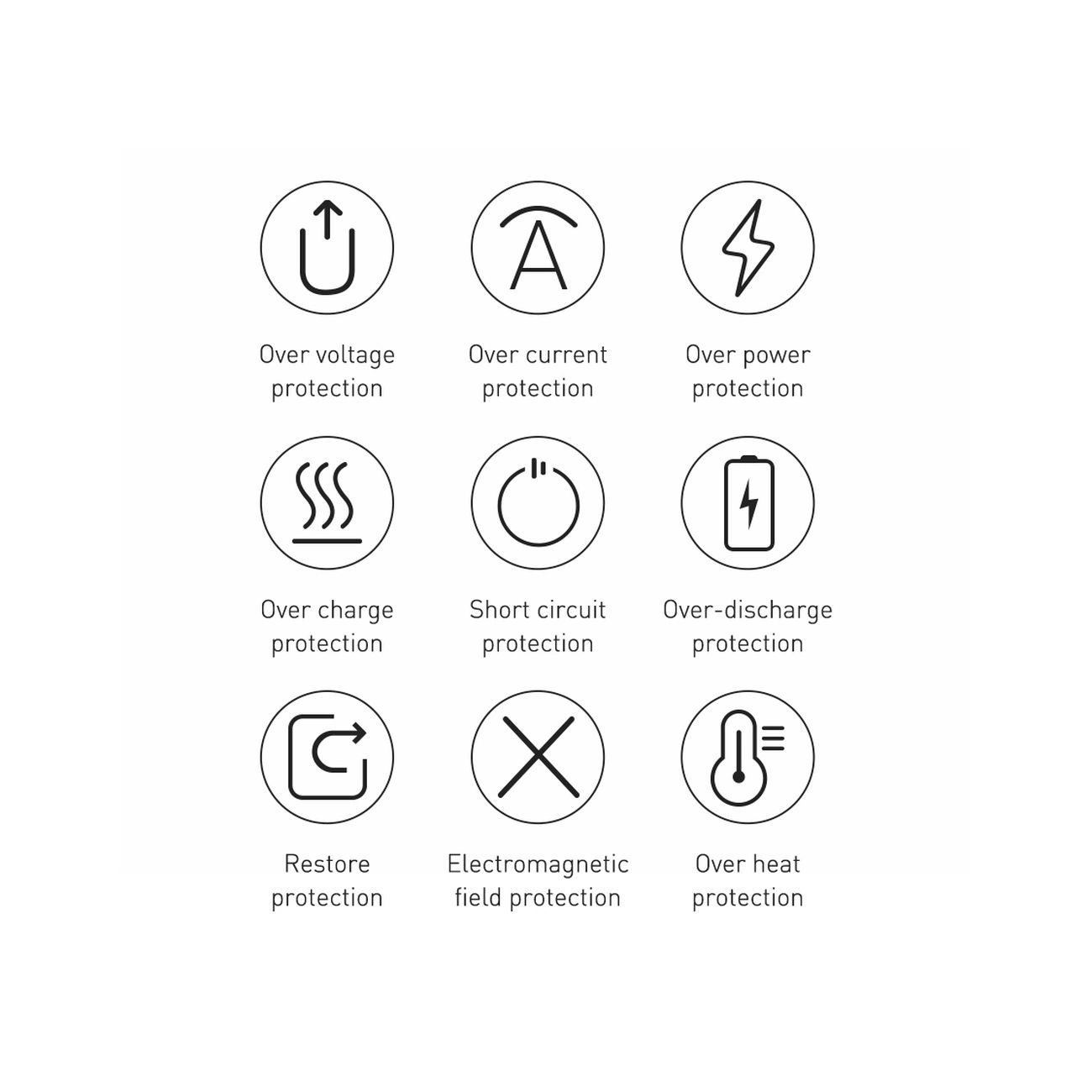 - Kimenetek: USB1/USB2 18W (5V/3A, 9V/2A, 12V/1.5A); USB-C 20W (5V/3A, 9V/2.22A, 12V/1.5A)