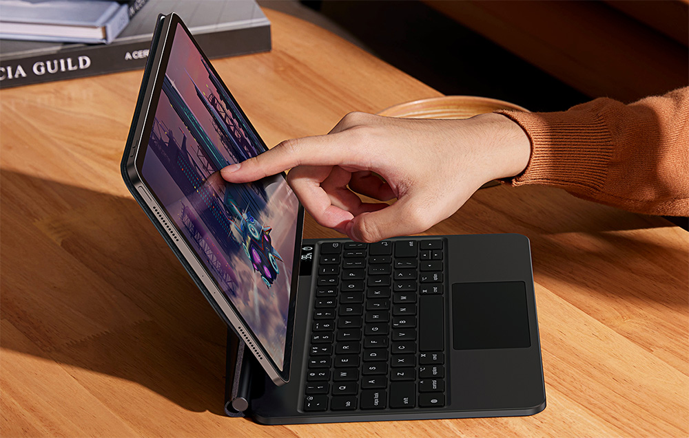 A Baseus tokot minden részletre odafigyelve alkották meg, így mágneses kialakítása is megkülönbözteti, ami növeli a használat kényelmét. Ráadásul a beépített billentyűzettel könnyedén átalakíthatja az iPadet laptoppá. Modern LED-kijelzőt is talál, amely tájékoztat a készülékhez való csatlakozásról vagy a hátralévő akkumulátorról. A tok nemcsak kiváló védelmet nyújt az iPadnek, hanem növeli a munkavégzés kényelmét is.