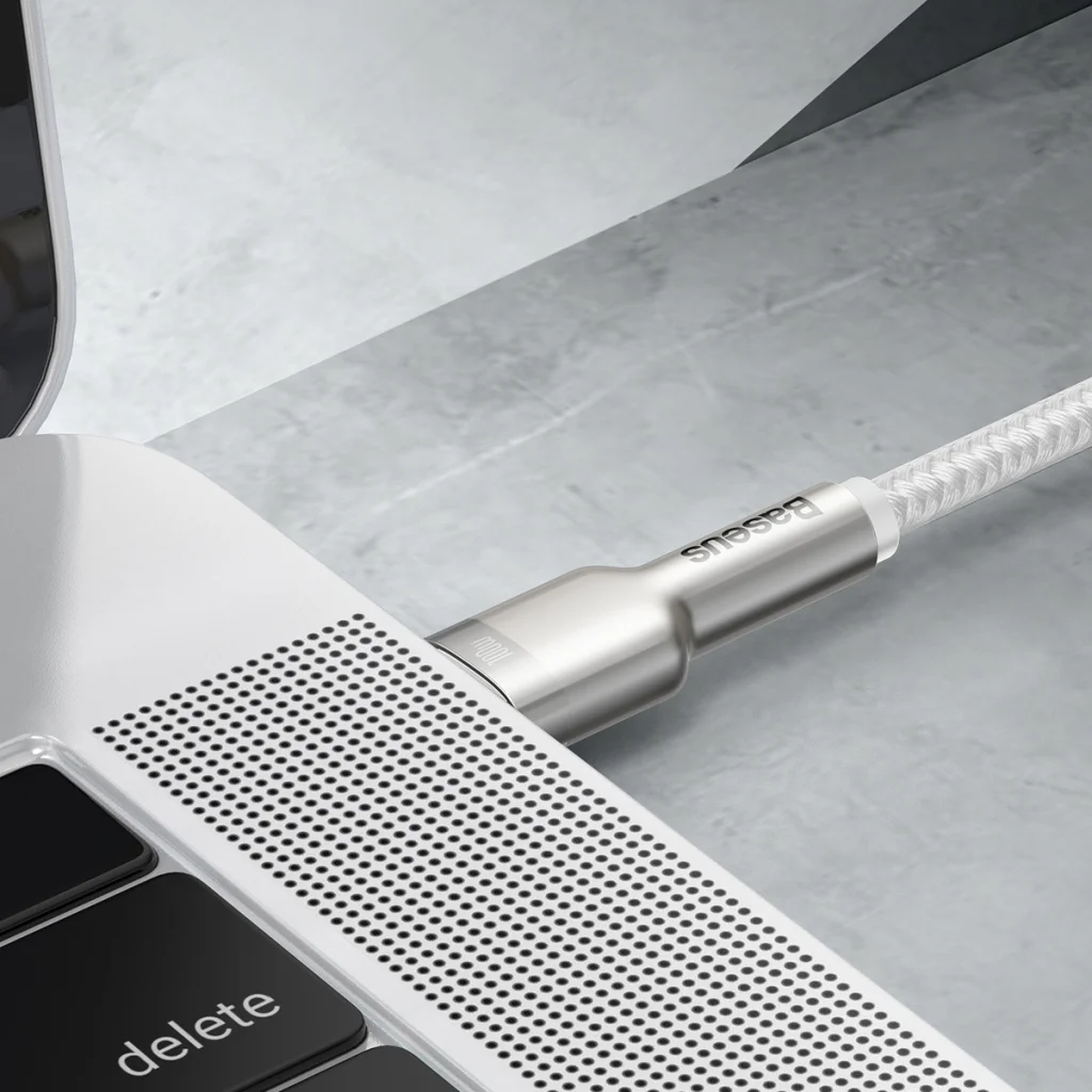 A Baseus Cafule Metal egy kábel, amely Type-C és Type-C csatlakozóval van felszerelve. A kábel úgy lett tervezve, hogy a mindennapi használat során a legnagyobb kényelmet biztosítsa. A nejlon fonat és a megerősített fém csatlakozók biztonságot nyújtanak a kábel használata során, és garantálják hosszú élettartamát. A kábel lehetővé teszi, hogy teljes mértékben kihasználja a kompatibilis eszközök töltéséhez szükséges maximális teljesítményt.