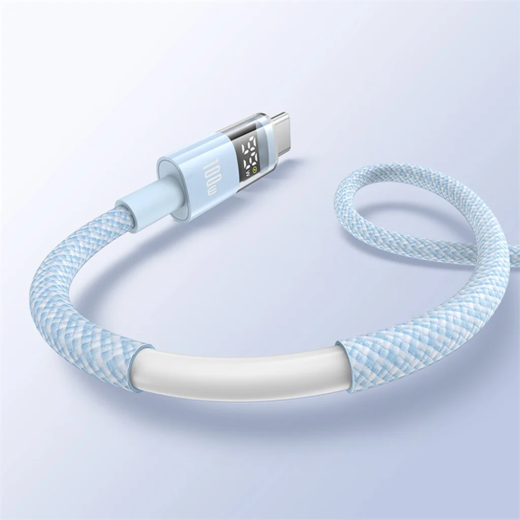 A Baseus Display 2 kábel egyik legkülönlegesebb tulajdonsága az átlátszó USB Type-C csatlakozóba integrált digitális kijelző, amely folyamatosan mutatja az aktuális töltési teljesítményt (Wattban). Így pontosan tudja, milyen sebességgel töltődik eszköze, optimalizálva a töltési szokásait és biztosítva a maximális hatékonyságot egy pillantással.