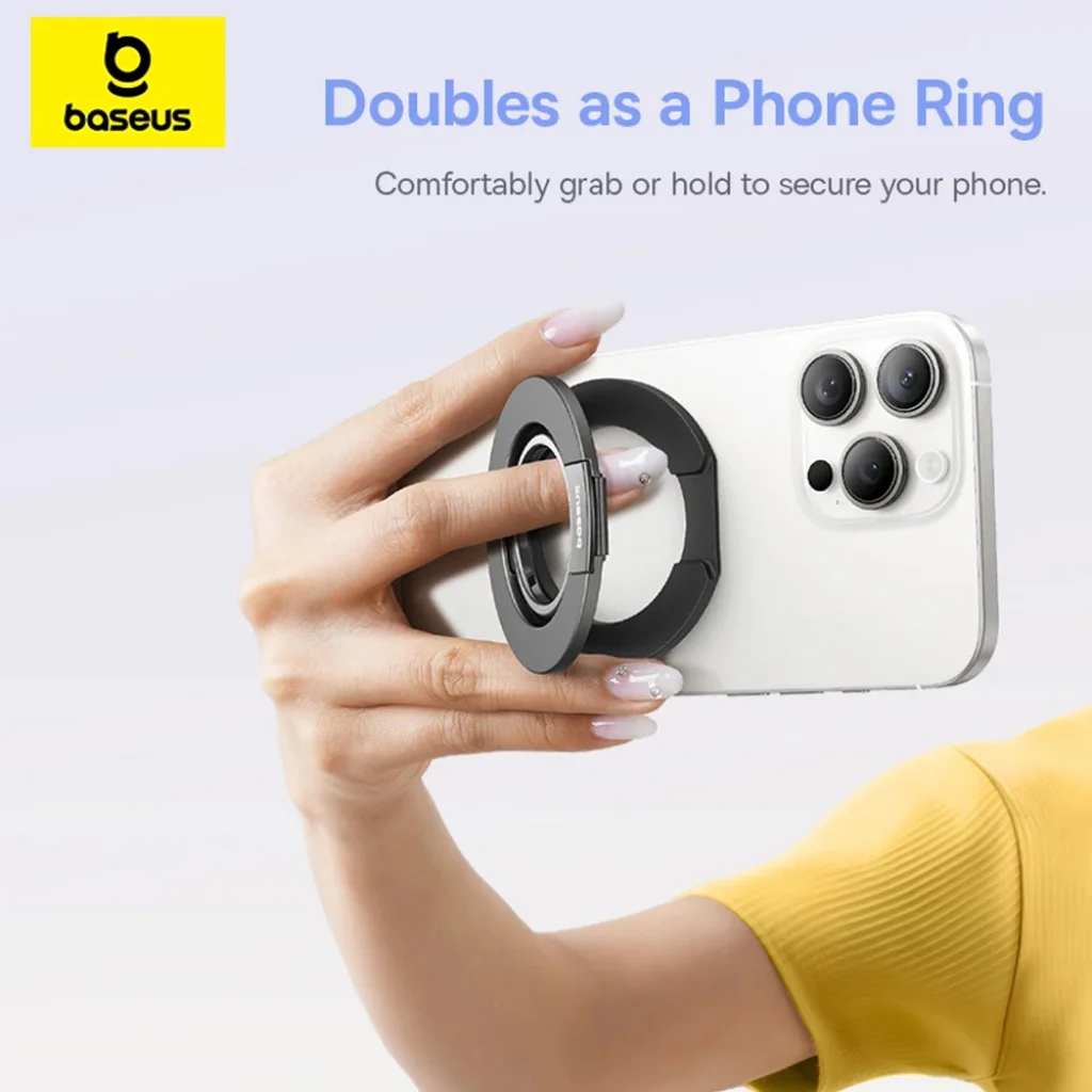 A Baseus MagPro 3 megduplázza a funkcionalitást, mint egy kényelmes telefon gyűrű. Kényelmesen megragadhatja vagy tarthatja telefonját, így sokkal biztonságosabb fogást biztosít, és minimalizálja a véletlen leejtés kockázatát, miközben böngészik, fényképez vagy videóhívást folytat.