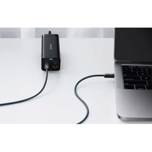 A Baseus Dynamic Series USB-C-USB-C kábellel azonnal feltöltheti az eszközöket, mint okostelefon, táblagép vagy laptop. A CALD000316 modell 100W-os teljesítményt használ és E-Marker chippel van ellátva. Emellett lehetővé teszi a fájlok 480 Mbps sebességű átvitelét is. A nejlon borítás tartósságot biztosít a terméknek és megakadályozza az összegabalyodást is.