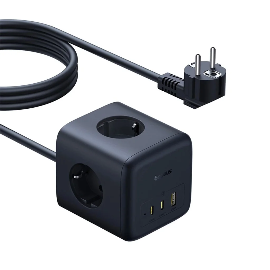 Baseus EnerFill FA11 67W hálózati elosztó, USB-A + USB-C kocka + 3 x EU aljzat 1,5m - Fekete
