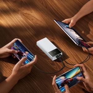 Felejtse el a választás kényszerét! A Baseus EnerFill FP41 három kimeneti porttal (1x USB-C és 2x USB-A) rendelkezik, amelyek lehetővé teszik, hogy egyszerre töltsön több eszközt – legyen szó telefonról, tabletről, fejhallgatóról vagy más hordozható kütyüről. Ez a funkció különösen hasznos családoknak vagy azoknak, akik egyszerre több eszközt is használnak, ahogyan a mellékelt képek is mutatják.