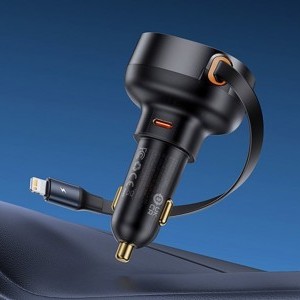 A Baseus Enjoyment Pro autós töltő egy gondosan megtervezett megoldás az utakon való töltési igényeid kielégítésére. A visszahúzható 70 cm-es kábellel, amely mind Lightning, mind USB-C csatlakozóval rendelkezik, ez a töltő egyszerű és gubancmentes használatot biztosít. Akár három eszközt is tölthet egyszerre a beépített USB-A porttal, ezzel időt spórolva és növelve a kényelmet. Élvezd a gyors töltést minden eszközöd számára, így utazás közben is kapcsolatban maradhatsz. Ezek a csatlakozók csökkentik az ellenállást a hatékonyabb töltés és tartósság érdekében. Tartsd rendezetten az autódat a visszahúzható kábelnek köszönhetően, így elkerülheted a kábelek összegabalyodása miatti bosszúságot. Az elegáns világítás megkönnyíti a töltő megtalálását gyenge fényviszonyok között, egy kis eleganciát adva hozzá. Kompatibilis személyautókkal, SUV-okkal és teherautókkal, a Baseus Enjoyment Pro autós töltő tökéletes útitárs minden töltési igényedhez!