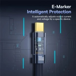 A Baseus explorer kábelbe épített E-Marker chip a jövő technológiáját hozza el. Ez az intelligens chip automatikusan érzékeli a csatlakoztatott eszköz igényeit, és ahhoz igazítja a kimeneti áramot és feszültséget. Ezáltal nemcsak a leggyorsabb töltést biztosítja, hanem megvédi készülékét a túlfeszültségtől és az optimálisnál nagyobb áramtól, garantálva az akkumulátor hosszú élettartamát.