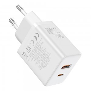 - Intelligens egyidejű töltés: A Baseus BPS (Baseus Power Split) 2.0 technológiájának köszönhetően a töltő intelligensen osztja el a 30W teljesítményt, ha mindkét portot használja. Ilyenkor a Type-C port max. 20W-ot, az USB-A port pedig max. 10W-ot biztosít, így egyszerre töltheti telefonját és fülhallgatóját vagy okosóráját.