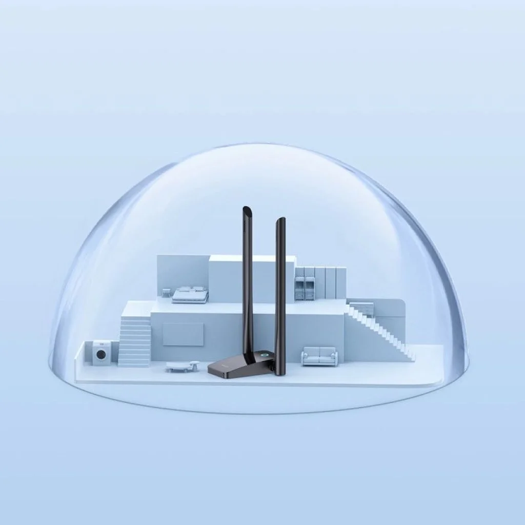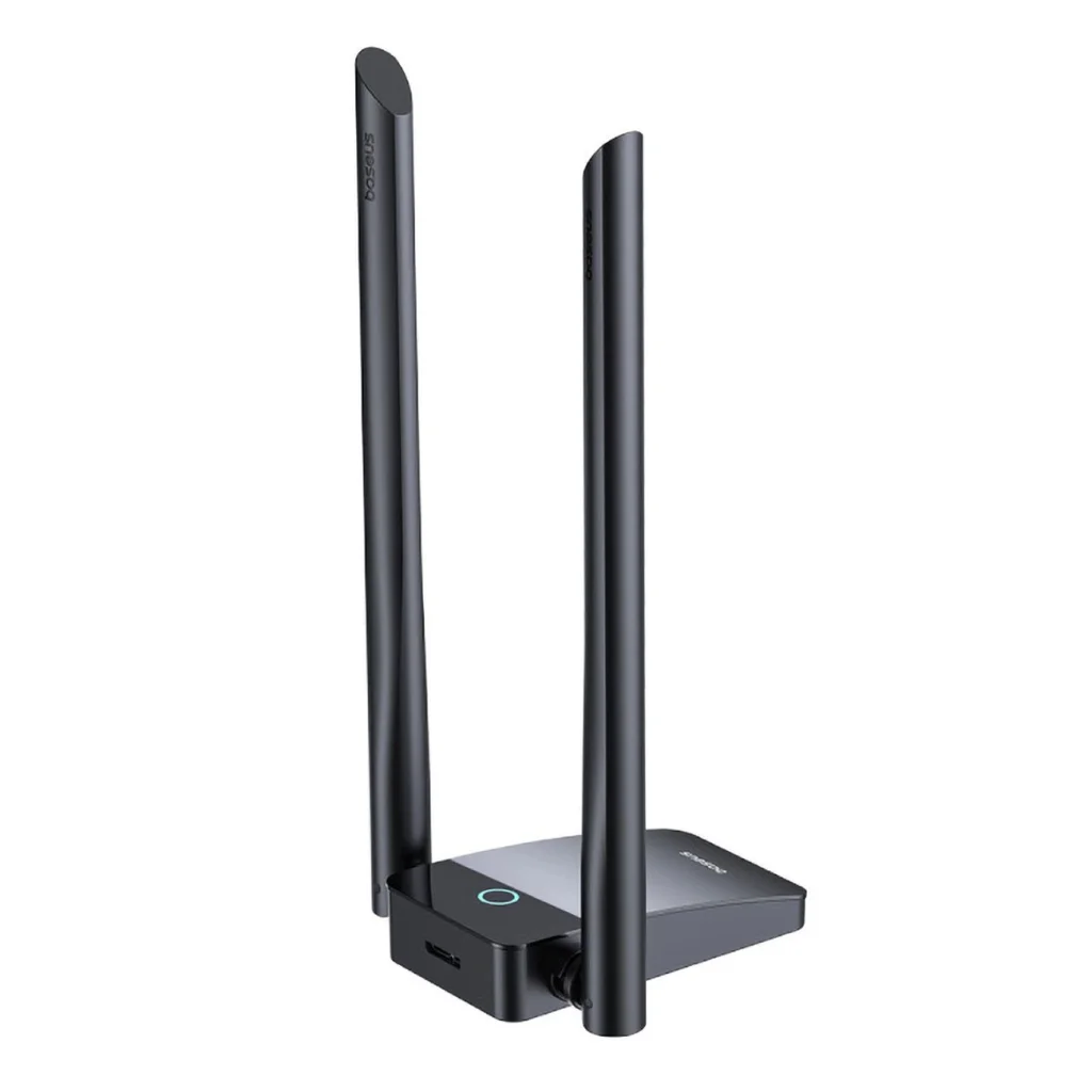 Az eszköz kialakítása lehetővé teszi az antennák dőlésszögének széles tartományban történő beállítását. Az 5 dBi-ig terjedő antenna energiáértéke biztosítja, hogy a kártya jól teljesítsen még olyan helyiségekben is, amelyek falakkal vannak elválasztva a WiFi hozzáférési ponttól. Az 1 m hosszú USB kábelnek köszönhetően a Baseus kártya elhelyezhető olyan helyen, amely még jobb jelvételt tesz lehetővé.
