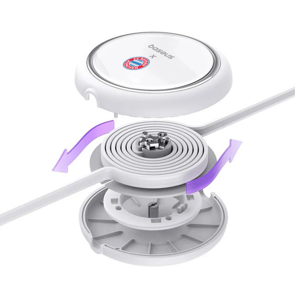 A Baseus USB-C-USB-C 100W-os töltőkábele (fehér) Bayern Edition, négy különböző hosszban állítható: 35 cm, 60 cm, 83 cm és 100 cm. A beépített mechanizmus biztosítja a sima és megbízható működést, igazodva az Ön igényeihez. Könnyű és összecsukott állapotban kis helyet foglal, így könnyen hordozható. A termék kompatibilis a legtöbb USB-C porttal rendelkező eszközzel. A Bayern München logó sportos megjelenést kölcsönöz a kábelnek, amit a legendás klub minden rajongója értékelni fog.