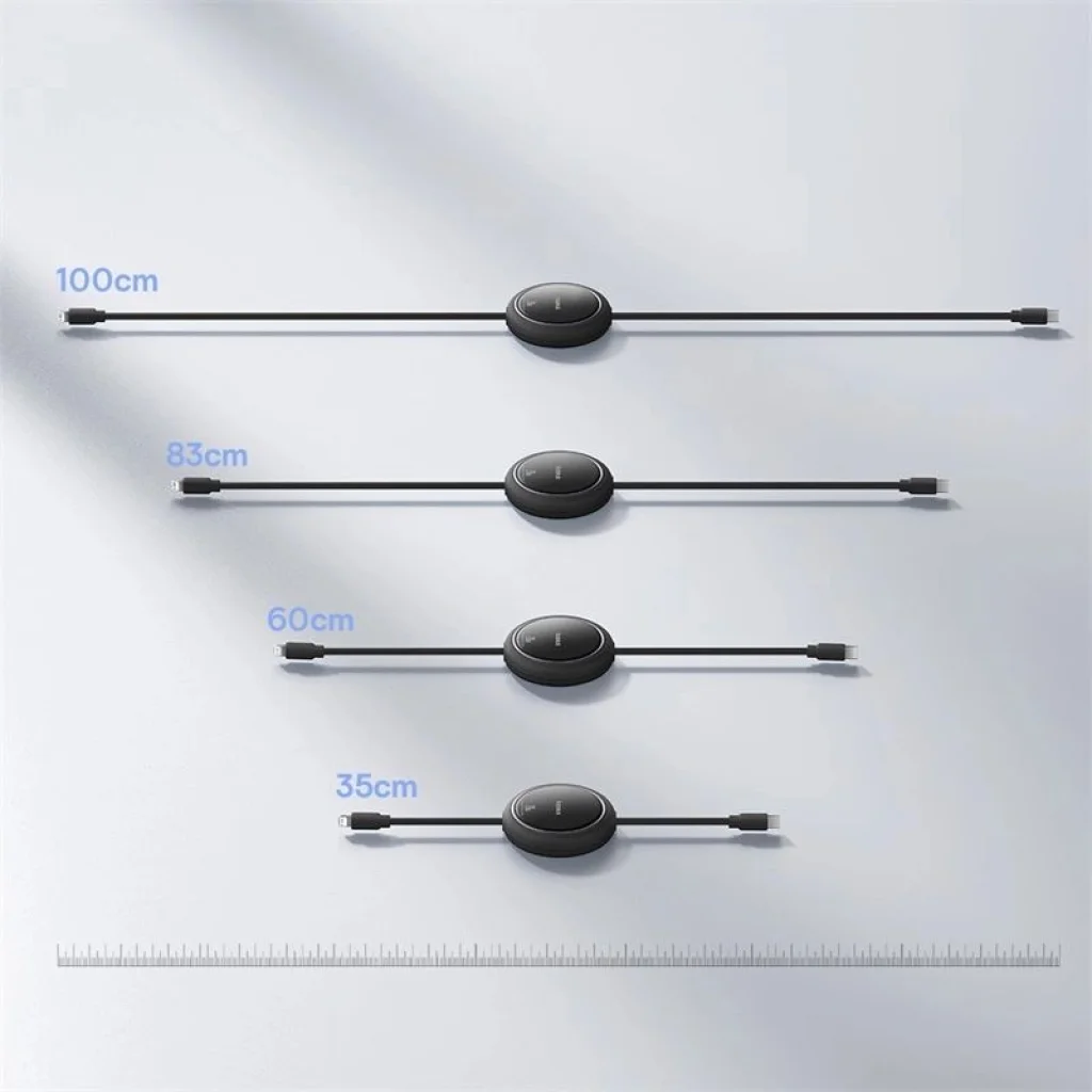 Baseus Free2Pull visszahúzható USB-C / Lightning kábel, akár 20W teljesítménnyel és 1 méteres hosszúsággal - fekete. Fedezd fel a Baseus kábelek új szabványát - a Free2Pull modell megváltoztatja, ahogyan Apple készülékeidet töltöd. A visszahúzható kialakításnak köszönhetően elfelejtheted a gubancolódó kábeleket. Elég egyetlen húzás, hogy a hosszt igényeidhez igazítsd. Négy különböző hosszúságállítási lehetőség rugalmasságot biztosít. A 20W gyorstöltésnek köszönhetően telefonod akkumulátora 30 perc alatt eléri az 50%-ot. A szilárd konstrukció és a tartósság miatt egy olyan kábel, amire évekig támaszkodhatsz.