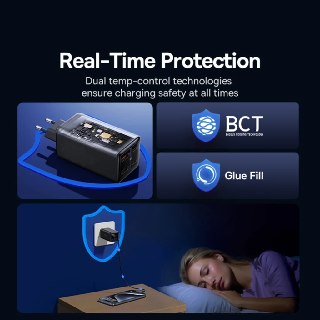 Termék leírás Baseus - GaN6 Pro fali töltő (P10162705112-00) - 2x USB, 2x Type-C, 100W, Kábellel Type-C, 100W, 20V, 5A, 1m - Fekete
