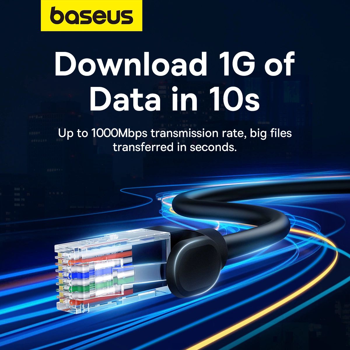 Baseus High Speed Cat 5 RJ-45 Ethernet kábel 1000Mb/s 1m kerek - fekete Fedezd fel a sebesség és megbízhatóság új dimenzióját a Baseus High Speed Cat 5 Ethernet kábellel. Ez a kábel akár 1000 Mb/s adatátviteli sebességet garantál, így az online munka simább és hatékonyabb lesz. Az RJ-45 eszközökkel való kompatibilitás és a tiszta rézhuzal (26AWG) biztosítják a legmagasabb csatlakozási minőséget. Tökéletes irodába, otthonra vagy online játékhoz, ez a kábel a megbízhatóság szinonimája. A Baseus High Speed Cat 5 RJ-45 1000Mb/s 1m Ethernet kábel legfontosabb előnyei: - Maximális adatszebességet érhetsz el. 1000 Mb/s sebességgel az online munka és szórakozás problémamentessé és villámgyorssá válik.