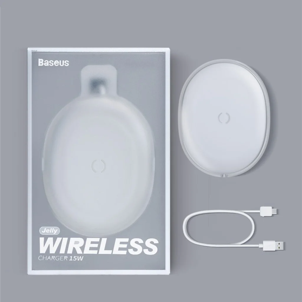 Baseus Jelly Qi vezeték nélküli töltő 15 W + USB - USB Type C kábel fehér (WXGD-02)
