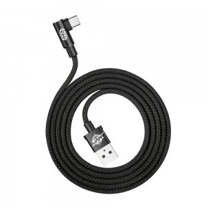 Tartós USB - USB Type-C kábel, könyök típusú csatlakozóval, így töltés közben sem zavarja a kábel a telefon használatát, főleg azok számára, akik sokat játszanak telefonjukon. Kiváló minőségű TPE anyagból készült, speciális nylon- és horgászzsinórral. Gyors és biztonságos töltéssel. Az ónozott rézhuzal gyorsabb és biztonságosabb töltést biztosít.