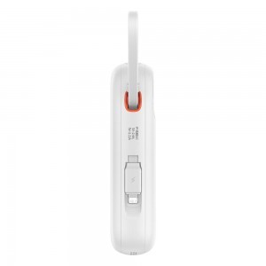 Ez a power bank valóban a kényelemre fókuszál. Nem kell többé külön kábelekkel bajlódnia, hiszen a Baseus Qpow Pro+ két beépített kábellel is rendelkezik: egy Lightning és egy Type-C kábellel. Ezek a kábelek nemcsak töltésre szolgálnak, hanem praktikusan a power bank oldalára integrálva hordozófület is képeznek, így könnyedén magával viheti.