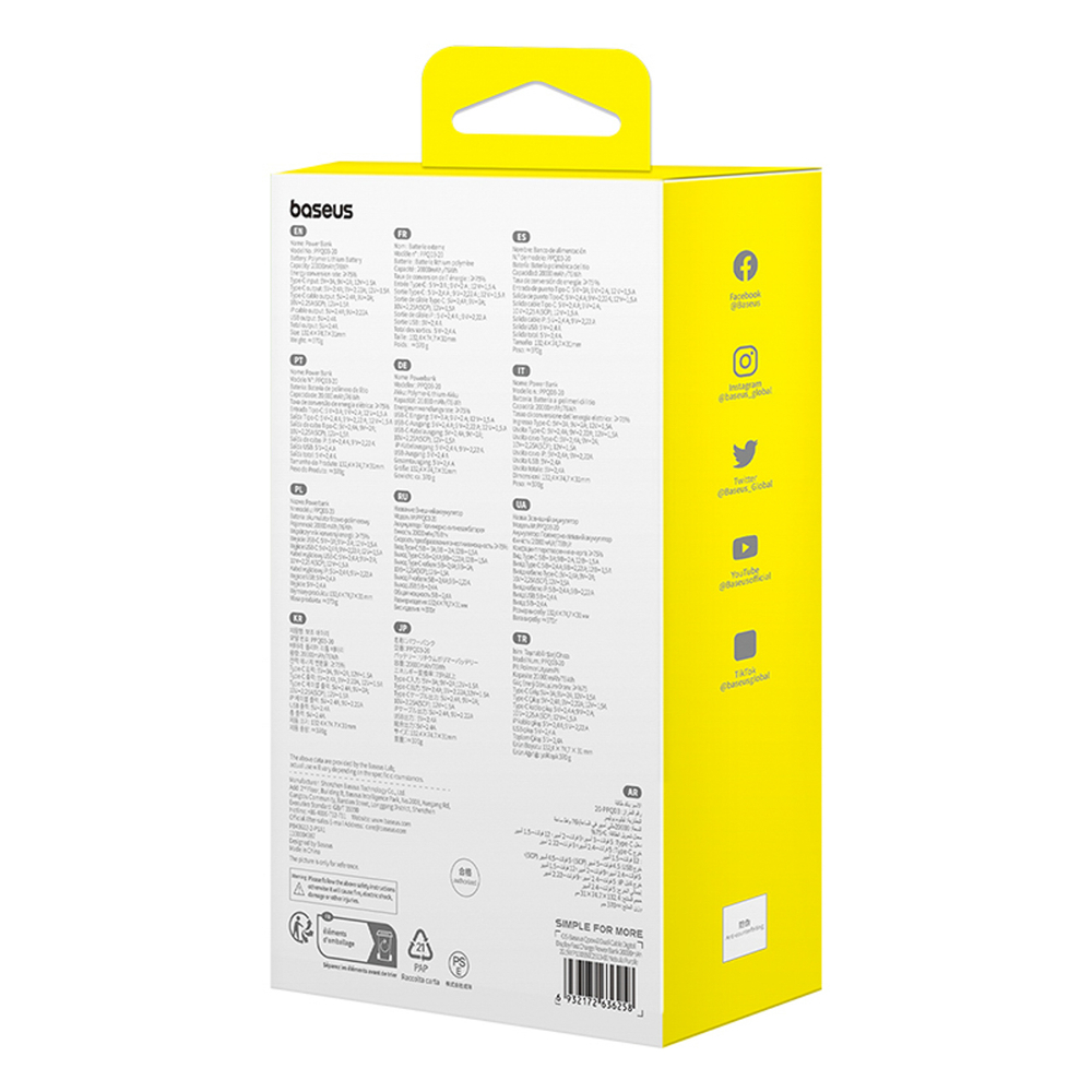 - Csomag tartalma: Baseus Qpow2 20000mAh 22.5W power bank, Baseus Simple USB-C 3A 0.3 m kábel